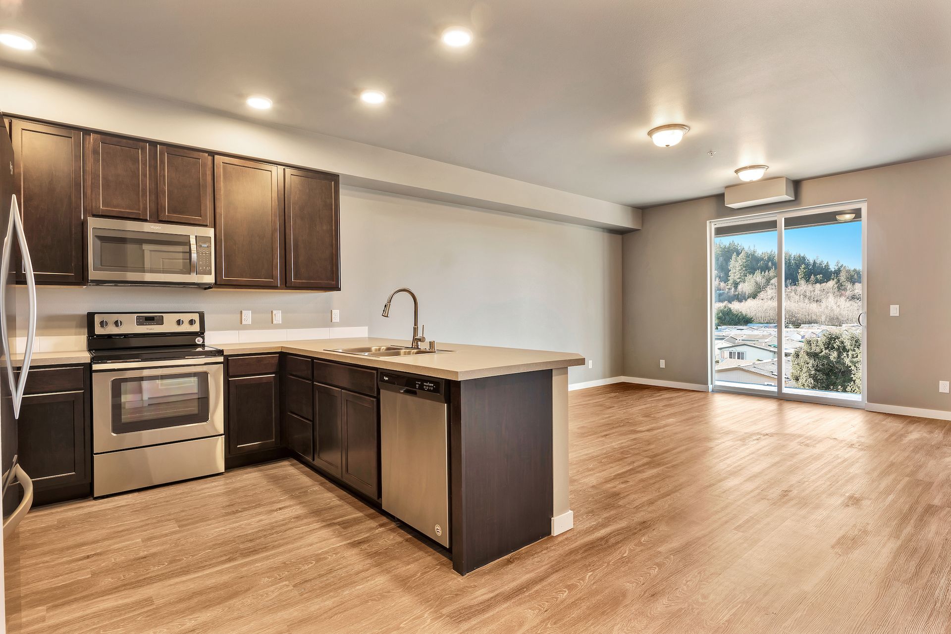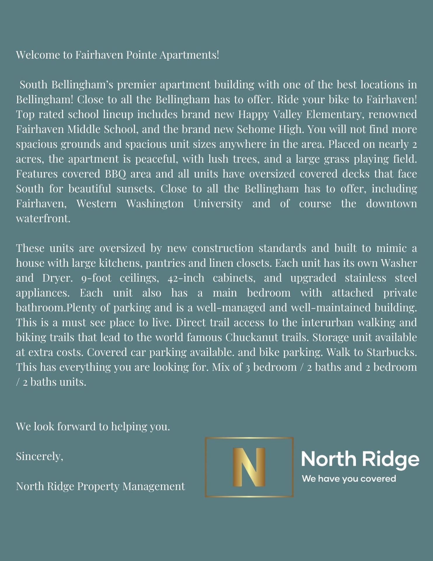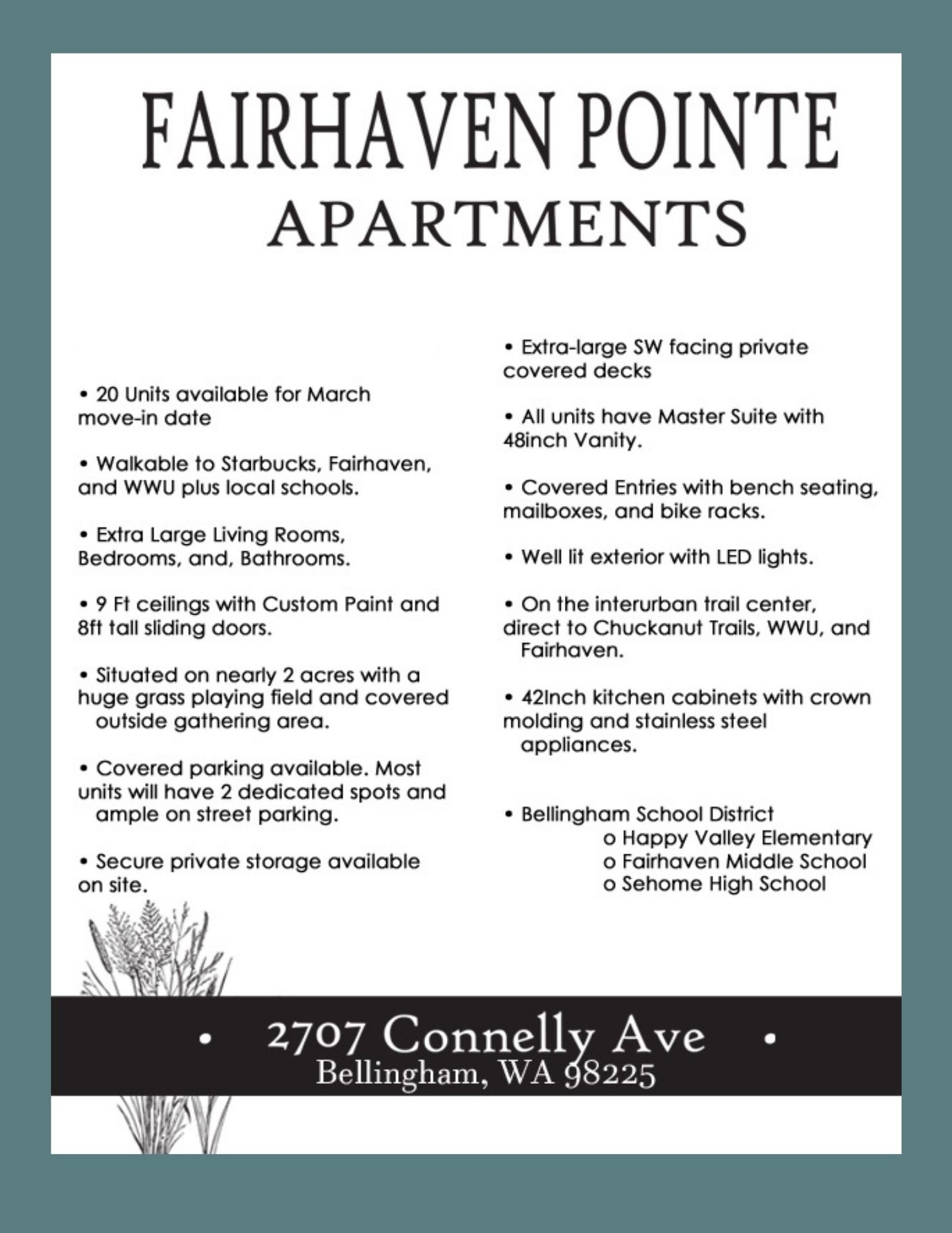 This unit has been fully remodeled with quartz cabinets, 42 inch cabinets, new floors, and bathrooms. New paint throughout with a modern touch that will make you feel like home. This is a must see unit. Huge covered balcony faces west. Large playing field with covered BBQ area. This is Fairhaven living. Adjacent to the famous Bellingham trail system. Safe and quiet location with no traffic nearby. Truly one of Bellingham top apartments to live in. Photos to come.