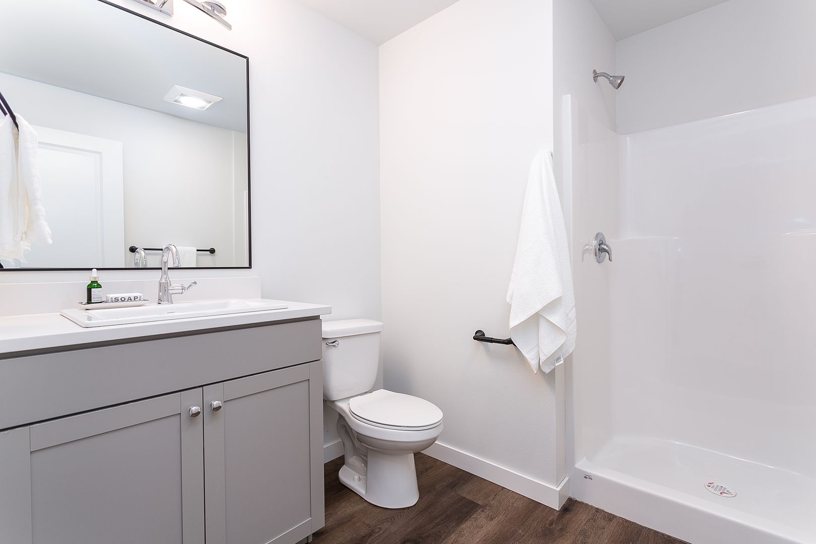 The Riser is situated in the South East corner. Perfect for watching the sun rise over the hills and mountains of Bellingham. This has en suite bathroom for one of the bedrooms. The other bedroom is large with full bathroom right outside the room. This unit features a large kitchen and a kitchen island. This is a big and bright unit! Come see today.