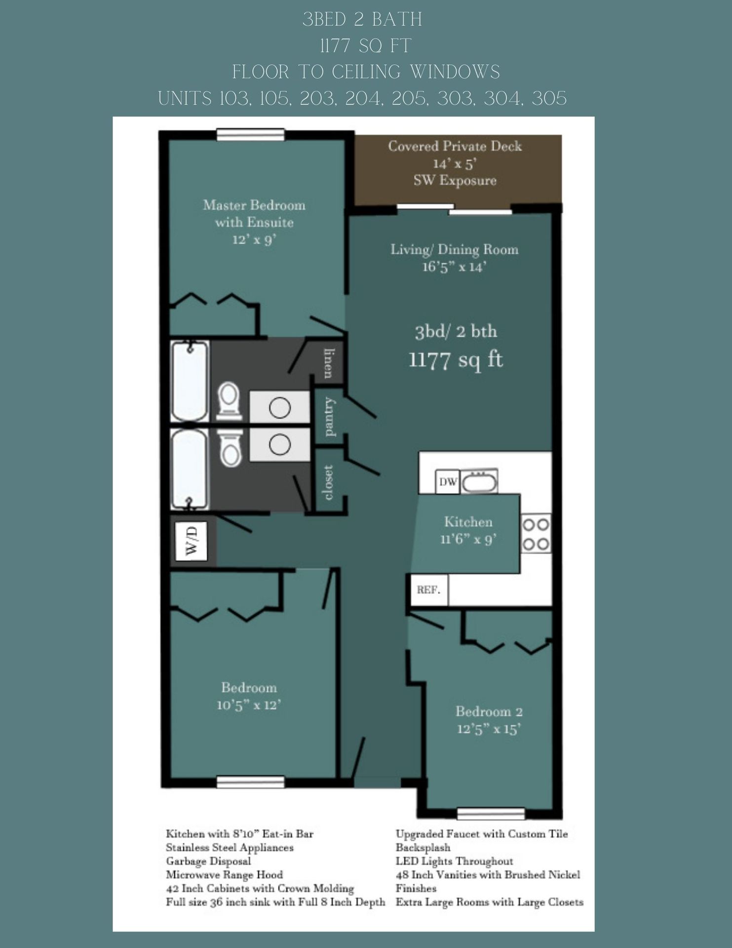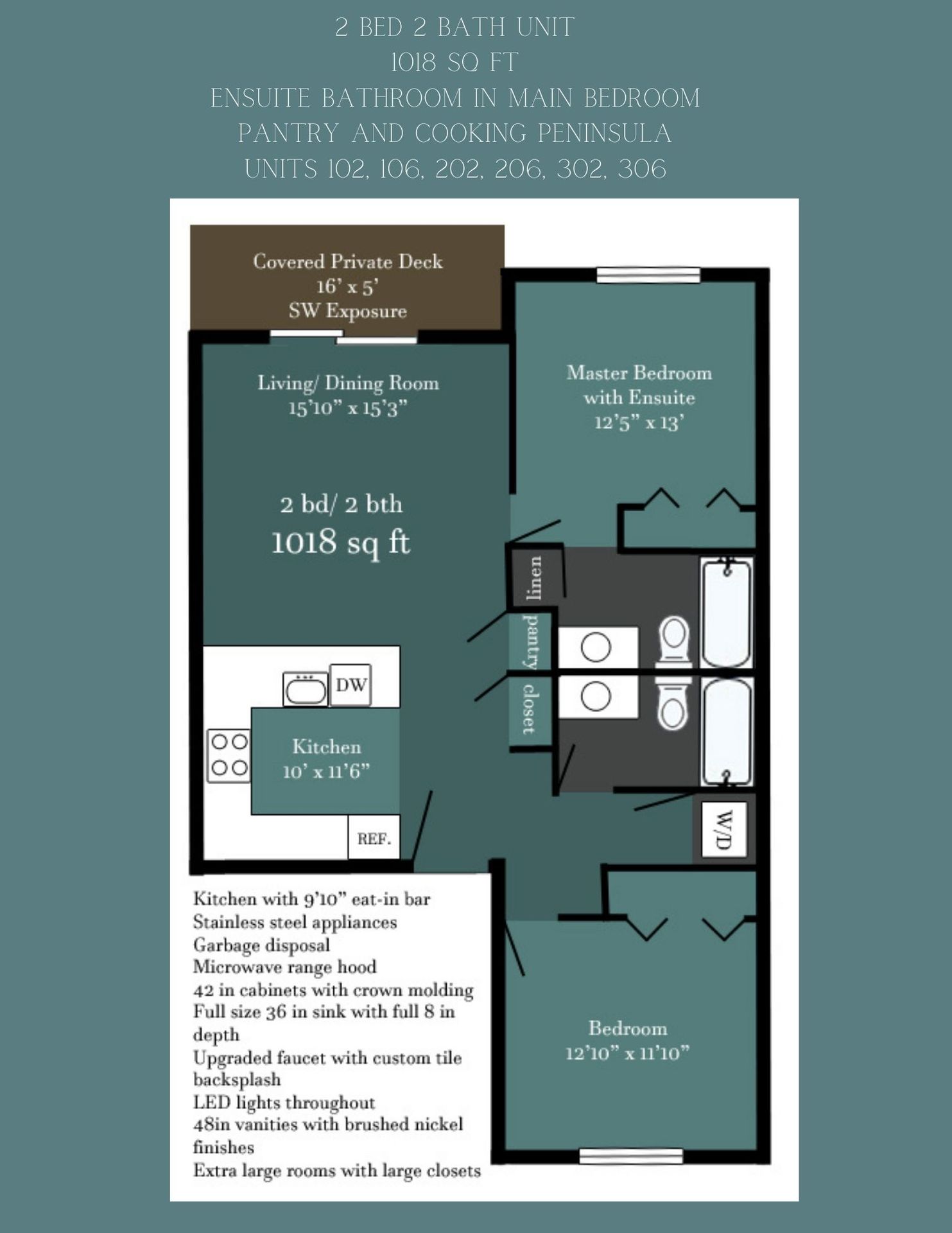 This unit is an oversized 2 Bed 2 Bath unit. One of the bedrooms has the bathroom privately attached to the bedroom. With the large living room, tall ceiling, 42 inch cabinets this place feels like home.